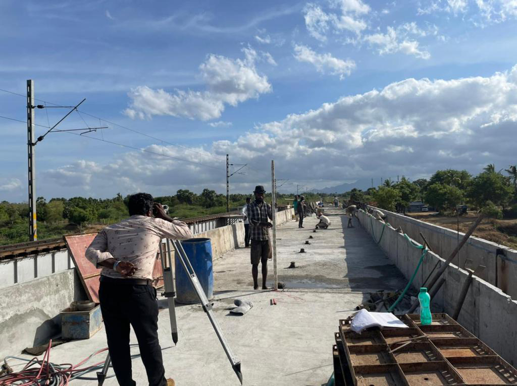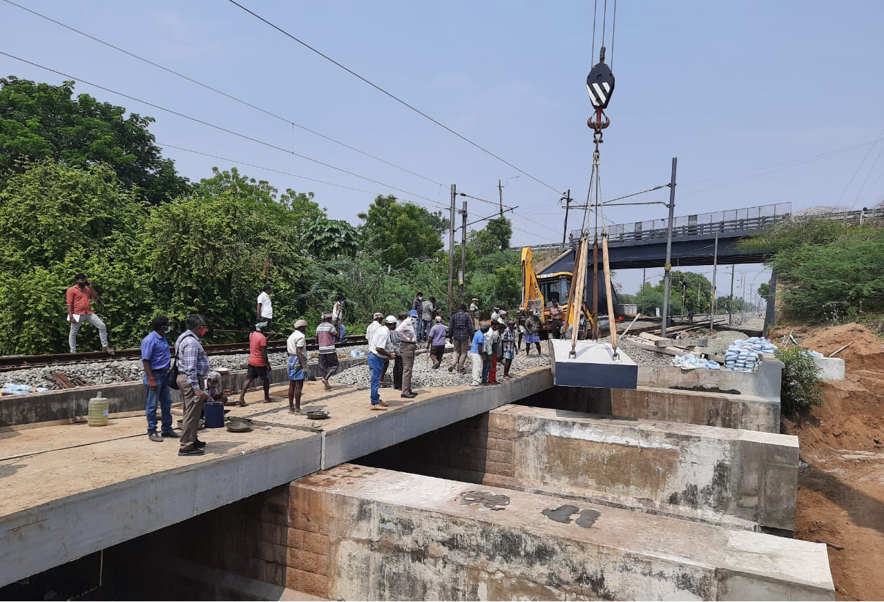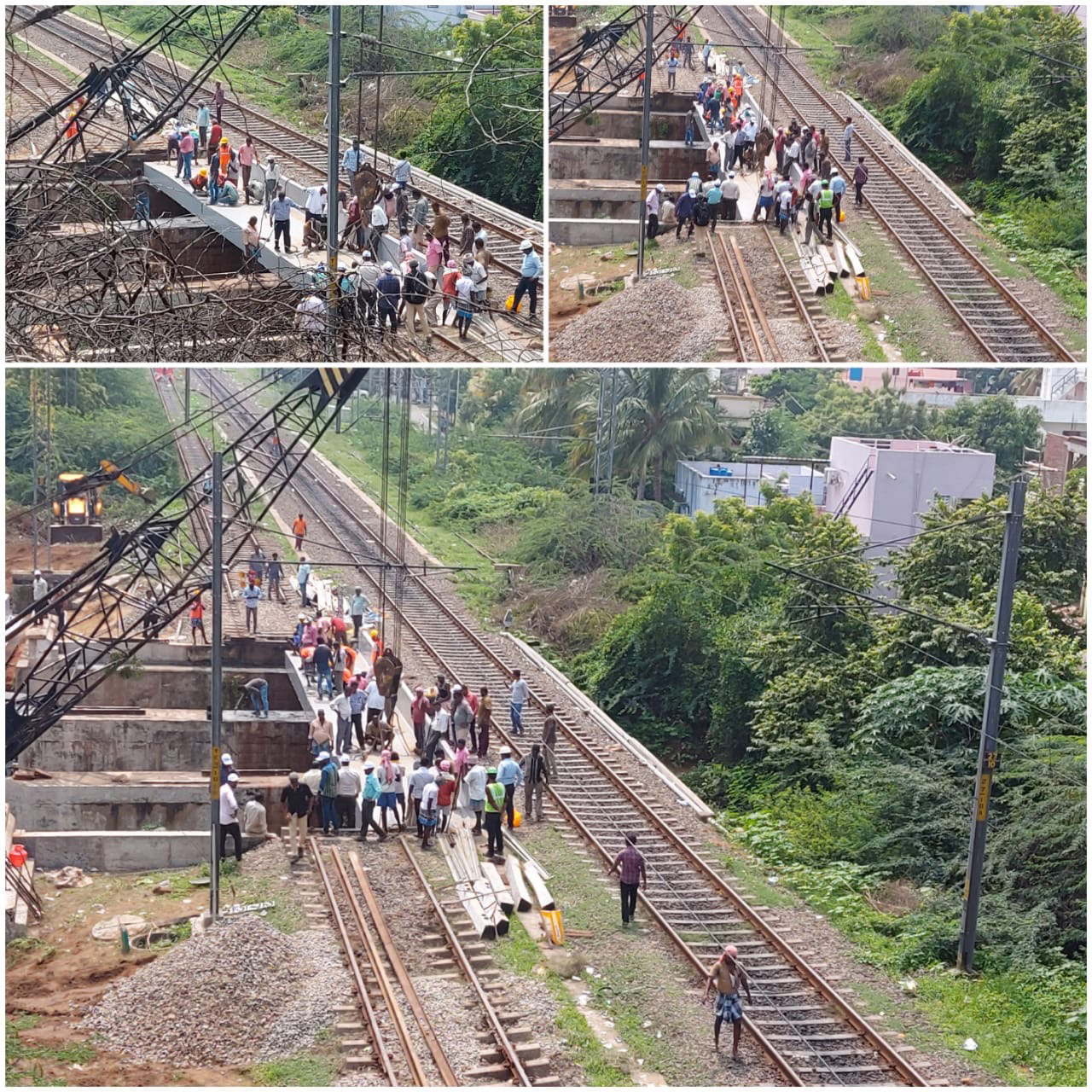 Launching is PSC Segment during Power and Line block at Tirunelvelli railway station.