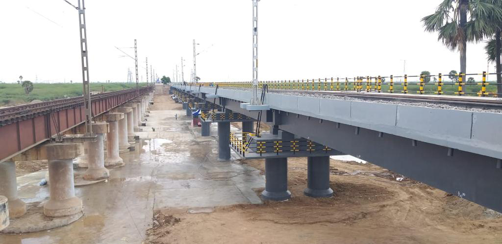 PSC Boc Girder Bridge 1674 located Gangaikondan. Total of 17 spans each of 20 meters in length.