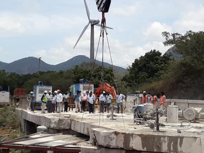 Diamond saw cutting and disposing a 3 span bridge. The total length is 72 meters.