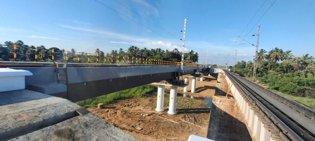 Launching is PSC Segment during Power and Line block at Tirunelvelli railway station.